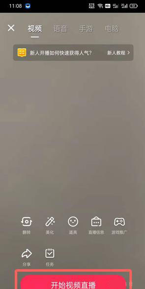 4、每次进入默认是开通语音直播,在上方切换到【视频】;