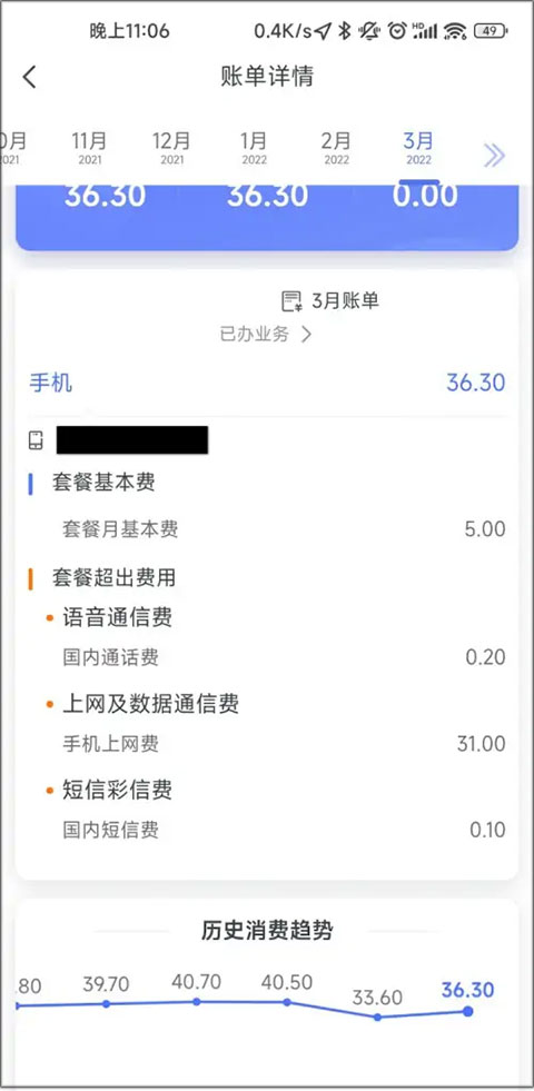 3、进入历史账单之后,就可以看到你的历史话费记录了。