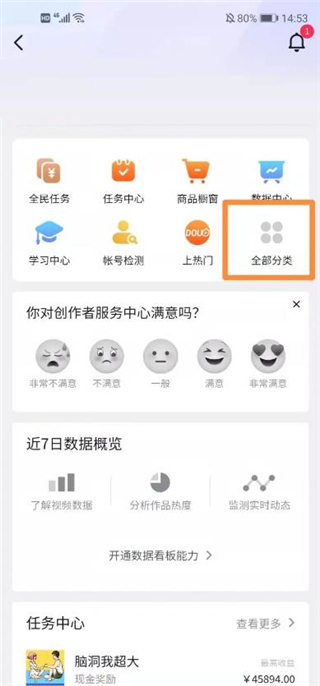 1、打开抖音APP,点击底部菜单栏“我”,在右上角找到三横的图标,然后点击创作者服务中心;