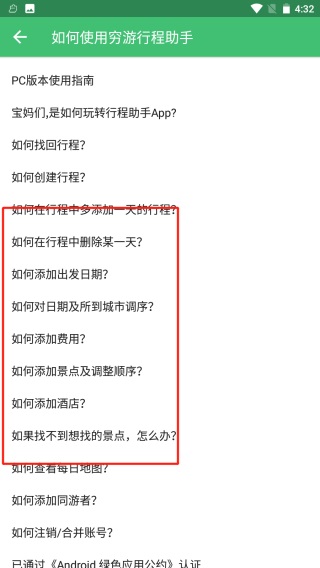 行程助手是一款能帮到你的app,如果你厌倦了旅行社千篇一律的走马观花,不想去观看热门景点的人山人海,想要品尝精品酒店带来的特色美食,这会给你一次不一样的旅游体验,精确为你找寻美味小吃,避免拥挤的人潮,出游必备行程助手,让你游出不一样的旅行。行程助手是一款方便快捷的行程规划工具,输入你想去的目的地,基于大数据算法,通过1000万穷游er的经验,根据你的目的地为你规划最合理路线,智能为你规划包括路线、景点、酒店等在内的每日行程,帮助你更方便快捷的制作你的专属行程。一键复制行程、移动端随时编辑等功能极大的降低了境外游行程的门槛,让你拿上别人的行程走自己的路吧!