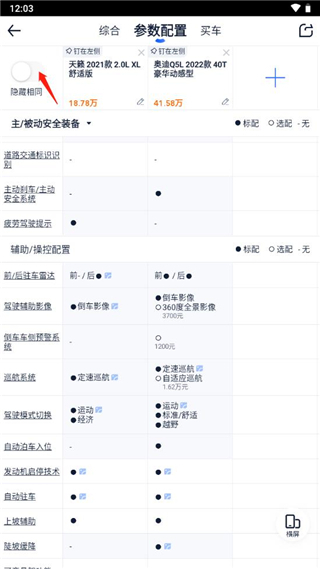 【图片对比】升级:一屏对比全部颜色,一键对比同年款车型图片,配置差异也清晰标注,无需切换,对比更直观!