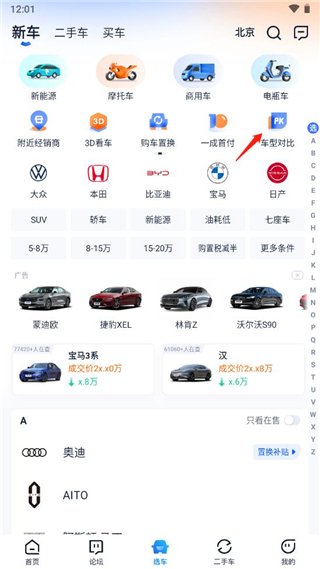 2、然后在打开的界面,点击打开【车型对比】这个选项;