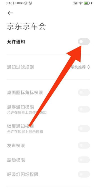 4、关闭允许通知按钮即可。