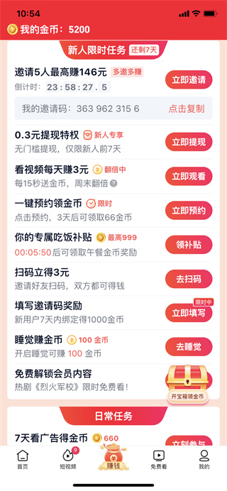 4、【能提现】边看视频边赚金币,现金提现秒到账,还能免费兑会员