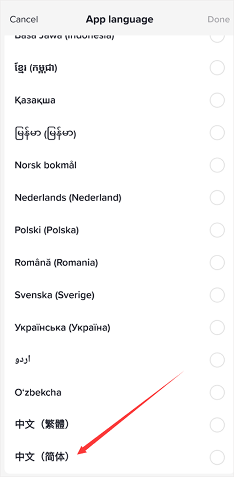 4、在语言选择界面中找到“简体中文”,点击并保存即可。