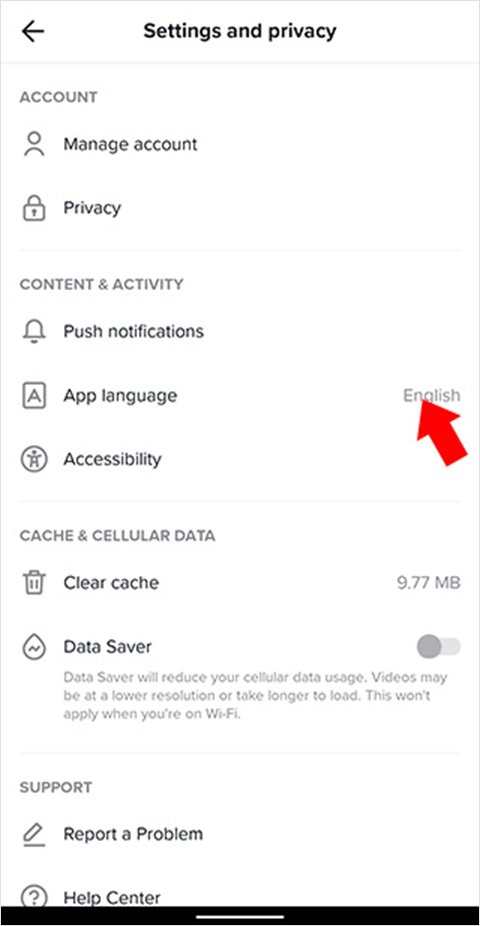 3、进入设置界面后,选择“App language”选项;