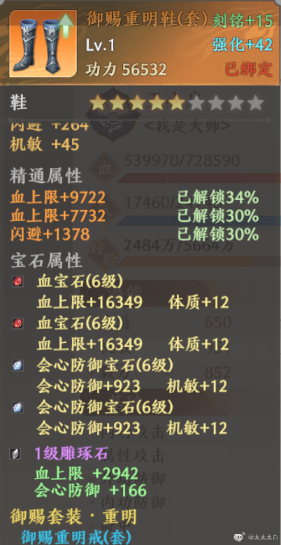 上图为双血+双会防,最大程度的提升了血量和抗暴击性,舍弃了闪避,换取了会防。