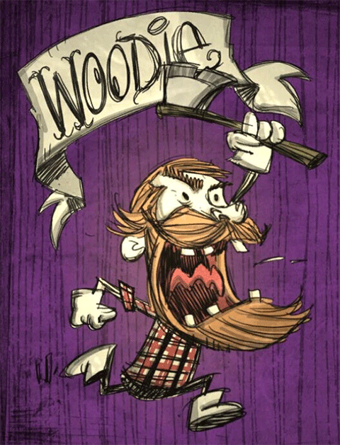 开局自带一个无消耗且砍伐速度极快的红色斧头,当砍到一定量的树木或在月圆之夜,伍迪会变身为一只巨大的海狸,此状态下身上的一切东西都会掉落在地上且无法拾取,生命值被树木值取代,树木值可以通过啃食木材回复,变零时则恢复人身,同时会相应的扣除一些 SAN 值。