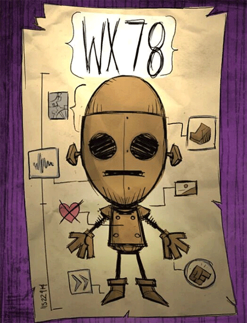 常规人物中唯一一个非人角色。它可以食用变质食物的同时不受到副作用。使用齿轮物品以后,可以增加生命 / SAN 值 / 饥饿度的上限。雷雨天如果被雷击中的话,会使其系统超载,变成一个移动大灯泡,同时跑步速度也会增加,生命值会得到恢复,不过 SAN 值会相应减少。而雨水则会对他造成更多伤害,基本上忠实的还原了机器人应有的特性。