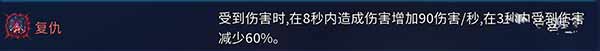 复仇可以保证我们不会被诸如自爆蝠、斩杀者、撕裂者这样的怪物秒杀,同时可以每次在受伤之后的3秒内受到伤害减少60%,这样不管在跑图还是打BOSS时,都可以保证自身的血量健康。