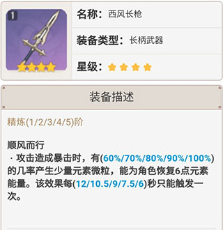 西风枪也是因为副属性是元素充能效率,所以我将它也列入了计算。不过因为被动并不会带来伤害方面的加成,西风枪的伤害自然是垫底级别的。在打算提高雷神给队伍带来的的充能收益的时候,也是可以考虑西风枪。不过一般是不推荐的,因为雷神即使是输出流,给队伍提供的充能也是够用的。