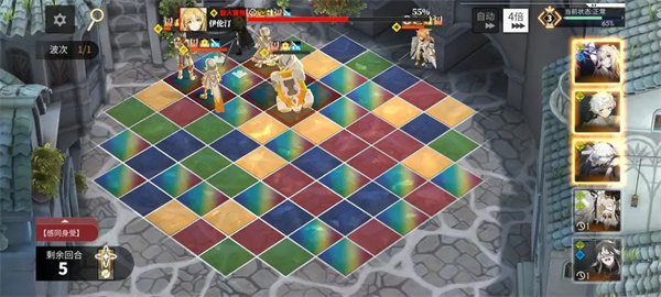 思路:普通敌人受到伤害时会同步传递给伊伦汀,那么保证每次平A和连锁攻击到普通敌人即可,开局连线尽量往“白夜城卫兵”就是那个狙手敌人靠,但也不要站在它一圈十字范围内避免敌人跳走。