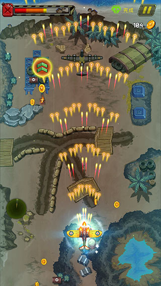 玩法简单又刺激:选择关卡后开始飞行,用手指拖动战机移动,自动开火射击。击落敌机可掉落道具 BUFF 加成,还能使用强力技能增强火力。最终击败 BOSS 即可通过关卡,完成额外目标还有更多奖励。