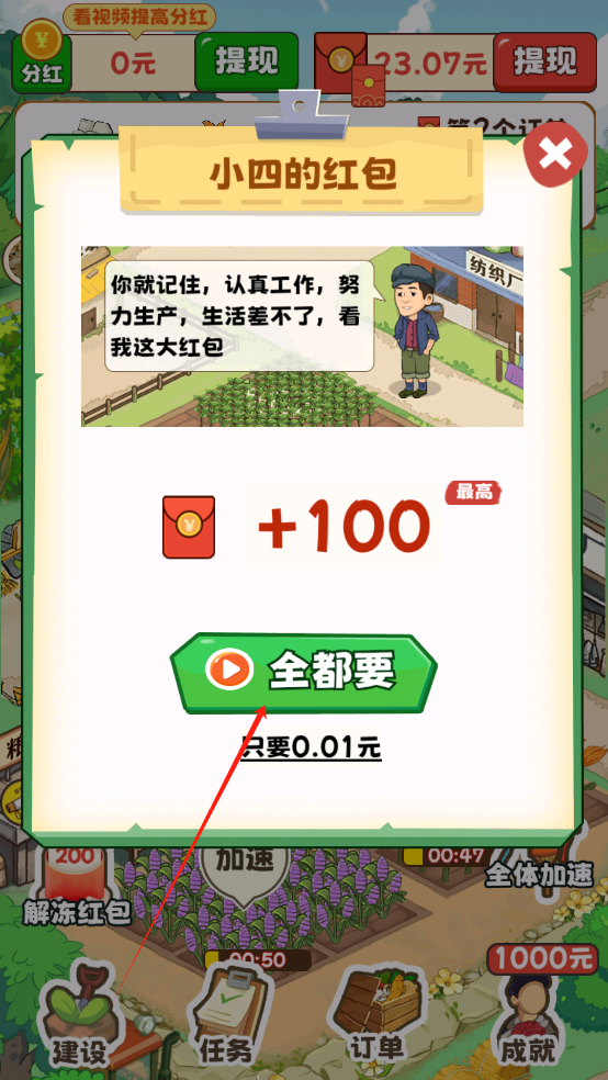 1、在游戏内,玩家建设小镇就会获得红包奖励,如种植作物