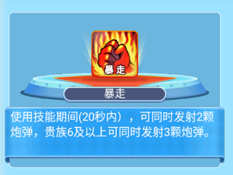 使用技能期间(20秒内),可同时发射2颗炮弹,贵族6及以上可同时发射3颗炮弹。