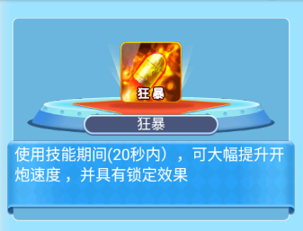 使用技能期间(20秒内),可大幅提升开炮速度,并具有锁定效果