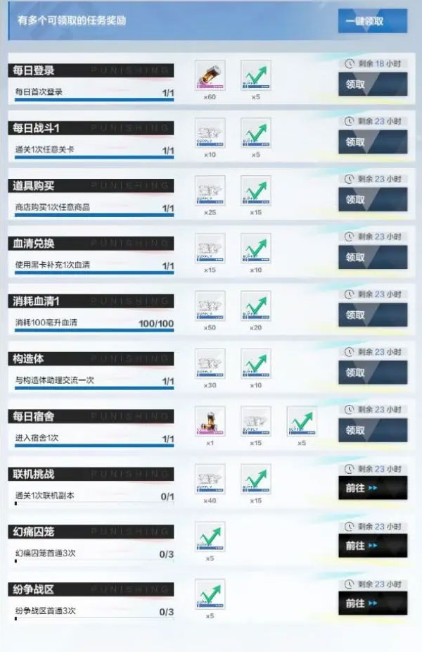 在此处消耗完血清在商店购买2W螺母一枚的角色碎片进入一次宿舍点击看板角色和交流即使不消耗黑卡兑换血清和打联机副本、囚笼和战区依然可以获取全部日常任务奖励