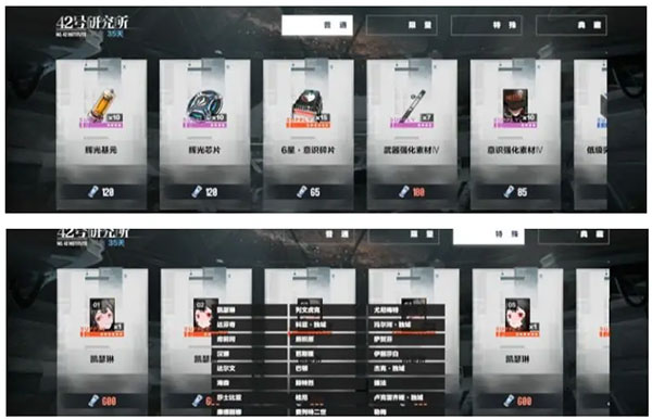 左侧关卡可获得大量代币,可于左下角的活动商店购买各类培养资源或者所需六星意识