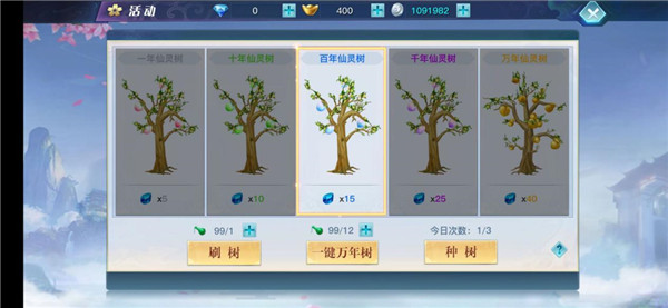 帮会作为长期居住的场所,环境当然也要有保障。在“活动”界面中玩家可以参与帮会种树,一起来维护帮会的环境。树的种类不同其收获时所获得的“强化石”数量也就不同,玩家不仅可以收获自己的树,也可以对其他玩家的树进行掠夺哦~所以一定要算准时间,及时收获呢!
