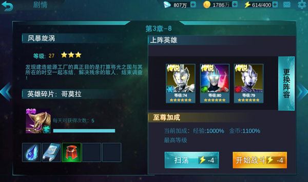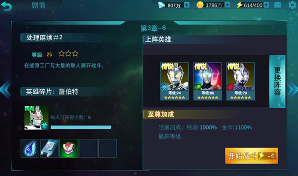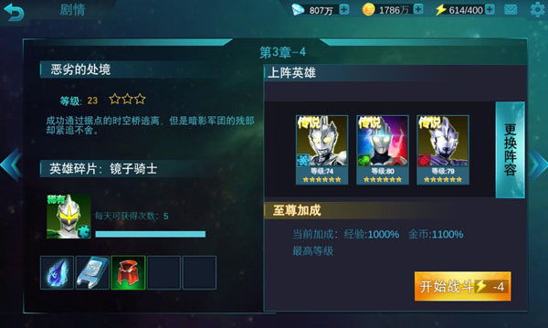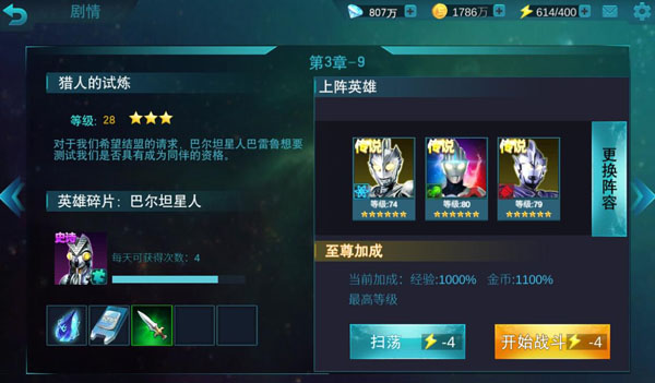 第三章副本是银河传说,相信这个时候很多小伙伴的备用英雄已经开始逐渐丰富起来了,可以根据副本难度逐渐调整英雄的使用了。