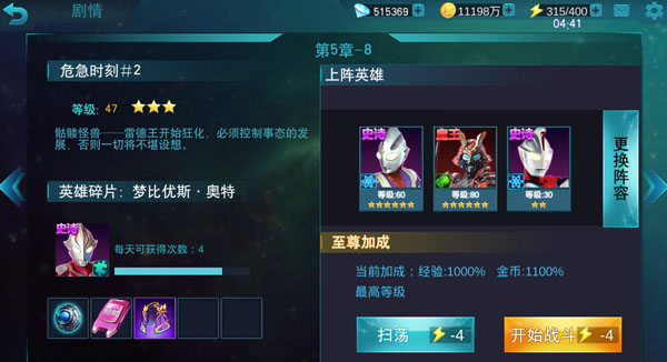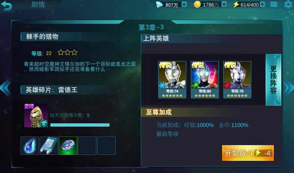 从第三章开始就需要考虑英雄搭配了,根据守关BOSS的特性选择可以克制的英雄进行攻击。