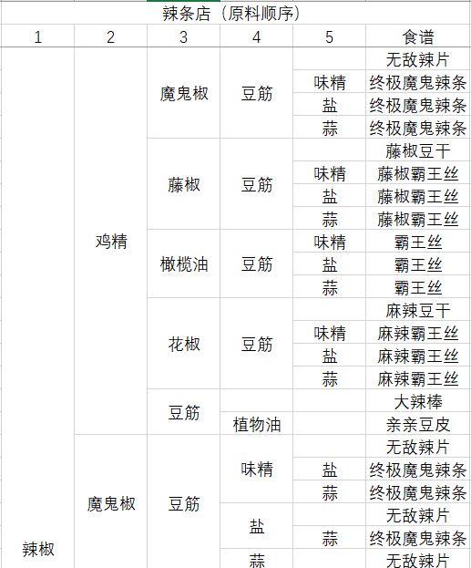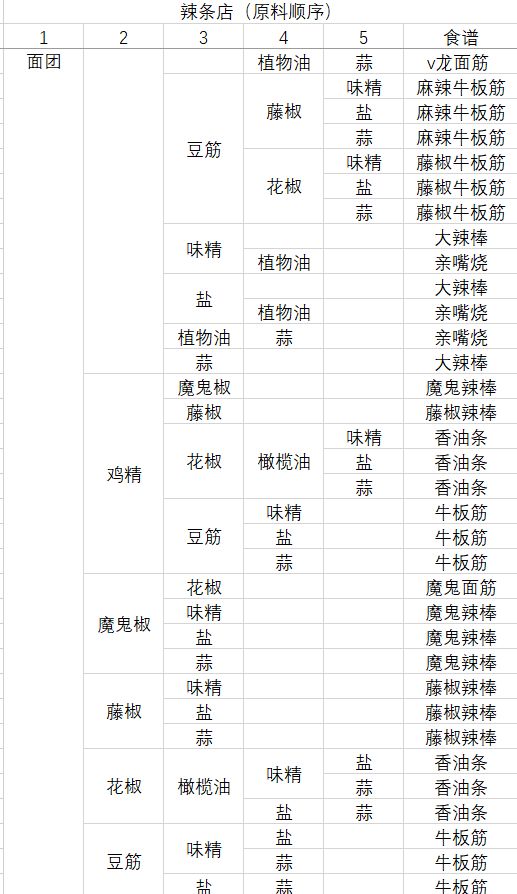根据(可能有的)不同需求,把食谱分为两类:一是按食谱顺序,二是按原料获得顺序。