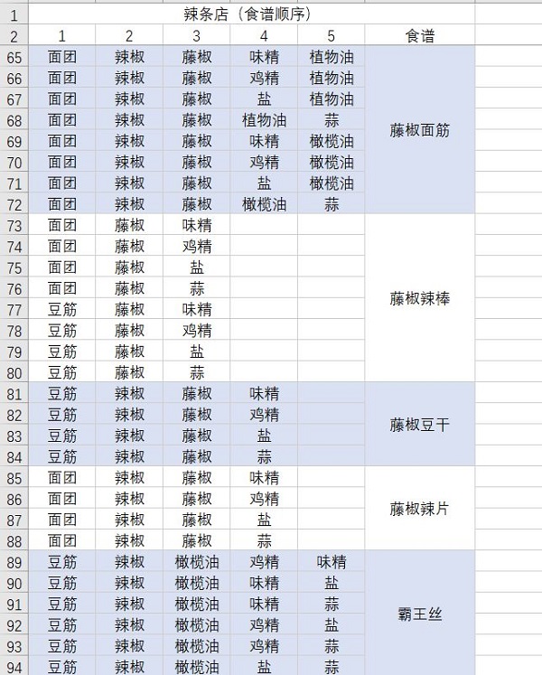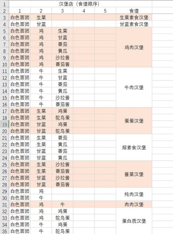 根据(可能有的)不同需求,把食谱分为两种顺序:一是按食谱顺序,二是按原料获得顺序。