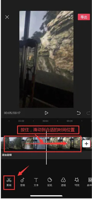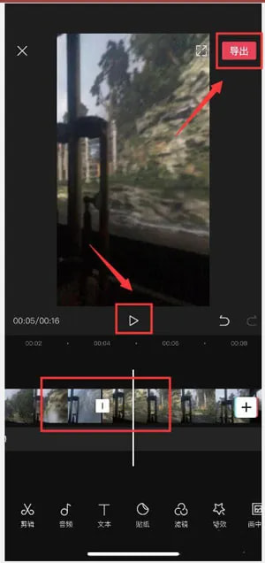 4.使用下方的所有功能之后,达到自己想要的效果之后,点击右上角的【导出】可以将剪辑好的视频保存到相册中;