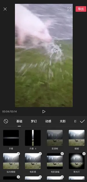 10.添加特效和滤镜:当我们拍摄出来的视频过渡曝光或者缺少曝光时,就可以使用特效或者滤镜来调整优化我们的视频画面;