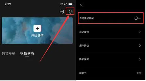 12.去水印:去水印功能需要在剪辑视频之前设置,在第一步的时候点击右上角的设置,关闭自动添加片尾,之后我们导出的视频片尾就没有水印啦。