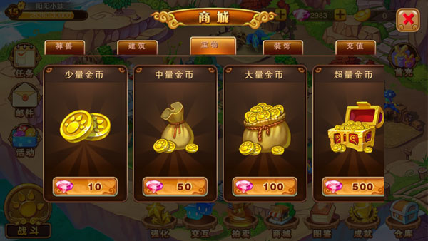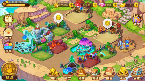 游戏的画面也很棒,神兽们看起来很逼真,玩法也挺有策略性。对于新手来说,金币和钻石的获取可能有点难,但通过完成任务、参与活动、出售多余的宠物或建筑,还是能慢慢积累资源的。特别是完成主线任务和征战星辰关卡,还能获得奖励,感觉还挺有成就感的。