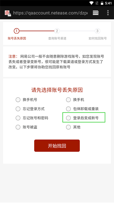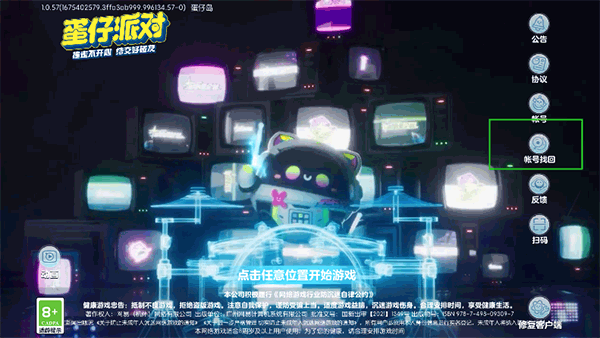 2、在游戏的登陆账号界面上,点击找回账号的按钮。