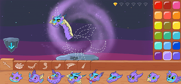 6、来到加油站,为体力不足的小龙们补充能量,只需将它们拖动到相应颜色的石头上。