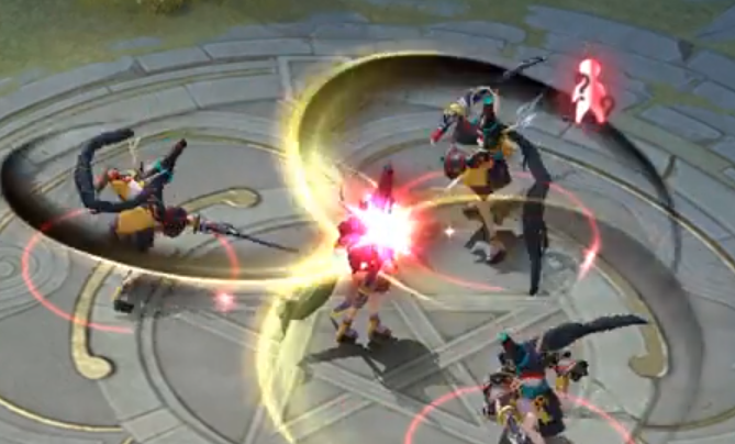 最后是他的大招也就是终极技能,释放这个技能时他会朝指定地点扔出酒碗,之后会对沿途上的敌人造成伤害,在命中敌人后这个酒碗还会对敌方单位添加一个叫做众矢之的的标记,这个标记引爆后敌人会被定身,周围的敌人会进入混乱状态,敌人彼此会陷入混战。