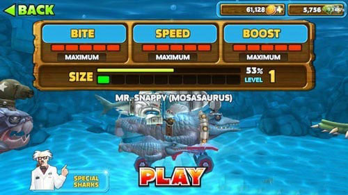 5、逐渐解锁更多水下凶猛野兽:灰鲭鲨、锤头鲨、虎鲨和无敌的大白鲨!