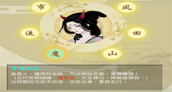 游戏开局一共有7个身份可以选择,分别是富、风、田、山、魔、流、市,这7个出身的特点具体如下: