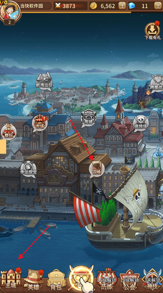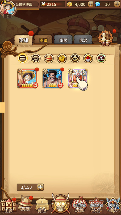 3、海贼王阳光冒险游戏有众多人气海盗英雄等你招募,打造最好的海盗团队;