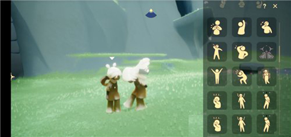 找到蓝色人影并触碰它,跟随光点,我们可以看到一个深灰色的石像,点燃石像上的火苗,它就会教我们一个新的互动姿势。