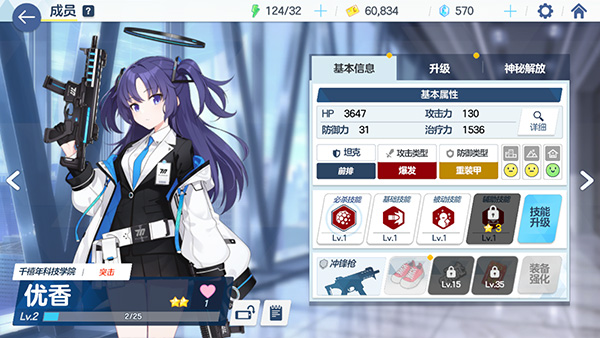 2、在基本的战略操作以外,也要考量学生对于战斗场地的适应性、使用的枪枝火力与敌方防御克制,根据关卡种类配置队伍。角色的等级随着玩家等级而提升上限,平时则需要准备装备与技能的提升才能配养学生更为强大。