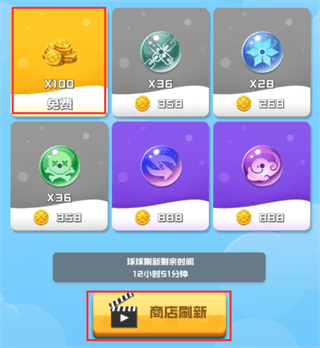 在商店自动刷新之前,球宝还可以通过观看广告快速刷新商店,每次刷新都可以重新领取免费奖励!