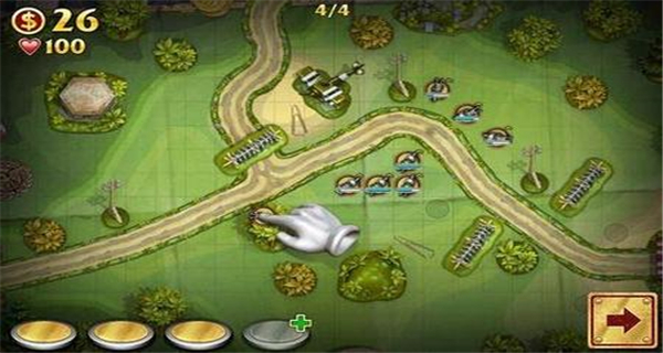 3. 地图设置。每一个地形有两关,两关相连,头一关可供建造的位置更多,第二关则建造位置很少,且敌人也更强。所以,在前一关,由于多个兵的性价比更高,一般是用人海战术。而在第二关,则得好好计划摆放,多提升兵种等级,尽量做到位置利用最大化。