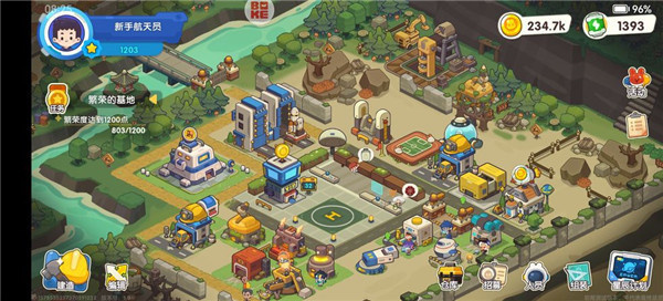 1、进入我是航天员游戏之后,首先需要将基地建设起来,而想要建设就需要繁荣度,繁荣度越高能够解锁的建筑就越多。