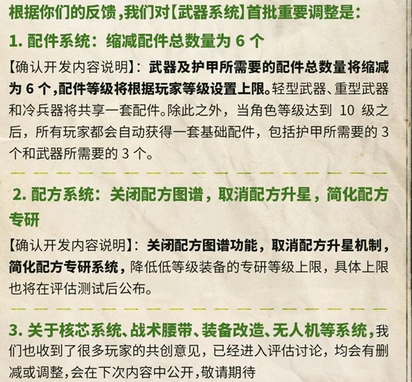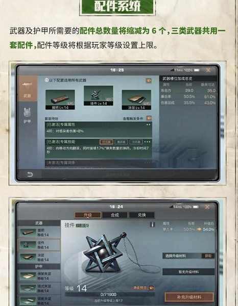护甲和武器的配件将缩减为6个,武器供用一套配件