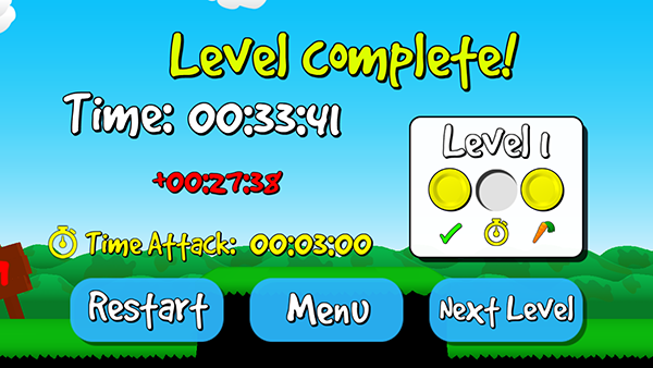 2、基于物理的性格和世界:玩家控制这只兔子在关卡中进行闯关,收集胡萝卜让兔子变得厉害