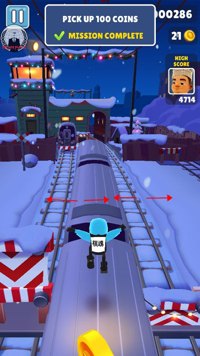 使用技巧:开场就使用滑板是不可取的,太过浪费。通常,都会在分数超过一定分数后全程覆盖,有了就用,以冲击记录。自己稍微熟练一点,通常都是在30w分以后才会开启,在刚玩游戏的开始时,自己分数超过10w就会开始使用。因个人习惯而异。