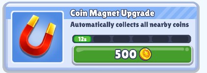 磁铁,作用是吸取金币。在30倍步速(有关步速的介绍会在下文提到)的情况下,一枚金币在结算是是60米,因此,金币越多,最后的附加得分也会越多。