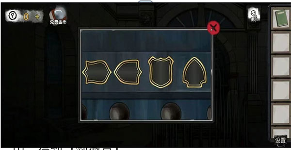 1、中庭右侧得到变形物7?(怀表),中间位置得到【石头片】,将其放在左侧凹槽处,找不同,如图②,得到【四个盾牌的方向】,解开左侧门锁,如图③,进入议会厅