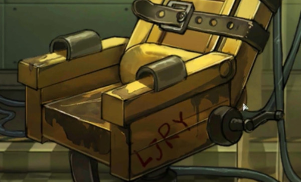 从电椅上取得水龙头,同时看到字母密码,这里对应床头柜另外一边的密码。