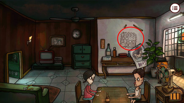 5、进入小夫妻的家里,到阳台用捡到的钥匙和保险丝修好电箱,就可以得到第九室门锁的图案密码
