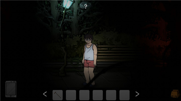 得到绳子后,公园深处出现大怪物,你需要过去看一眼,触发剧情,大怪物追你,然后你需要拼命往回跑,向左的方向跑,一直跑到头,就通过了。